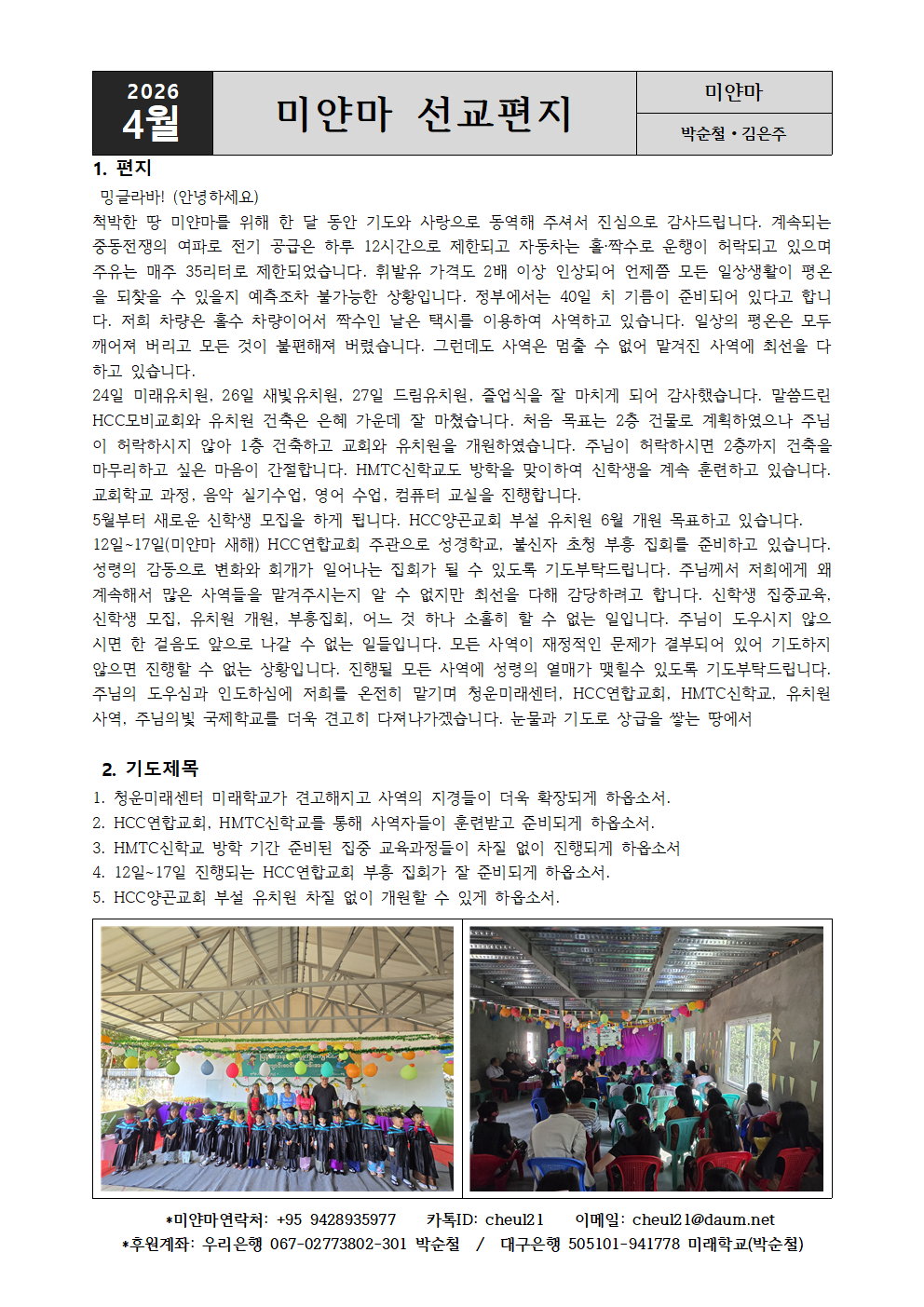 | 111 | 미얀마 박순철 선교사님 4월 선교편지 | 안동서부교회 | 2026-04-04 | 16 | |
